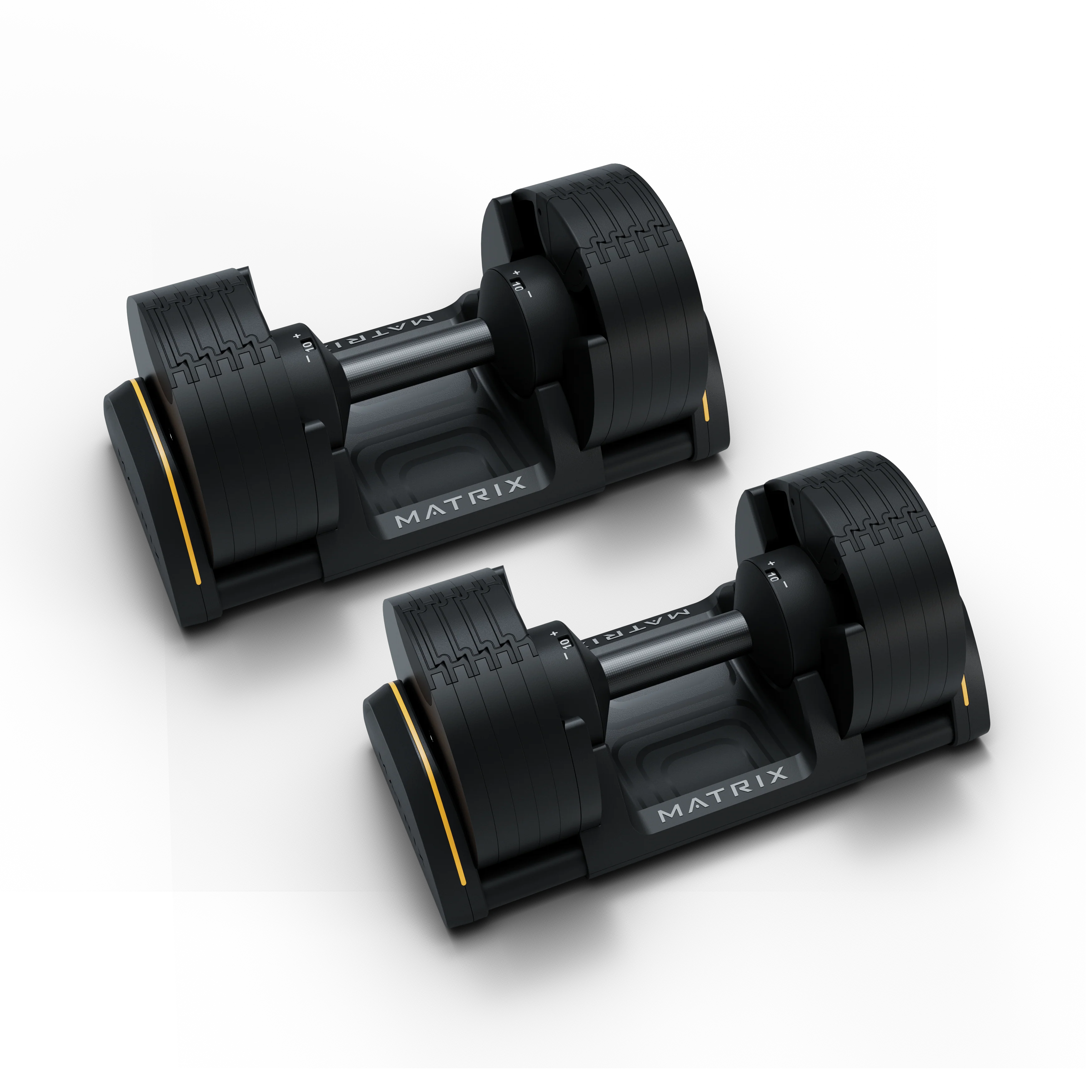 No matter how you train, our adjustable dumbbells make getting a complete workout smoother than you ever imagined. Simply twist the handle and feel the click to set your weight, and count on precision engineering to keep every rep balanced. An ingenious nesting design means our dumbbells can replace up to 10 traditional pairs to fit your space beautifully.